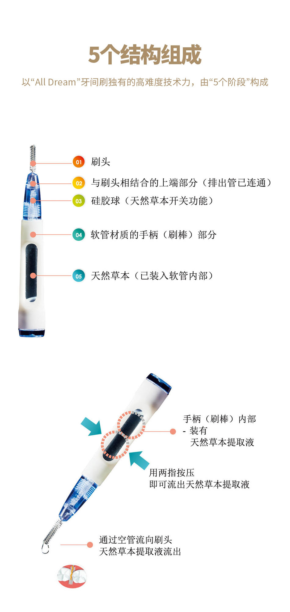 新概念新牙刷具有天然草药提取物排出的功能。